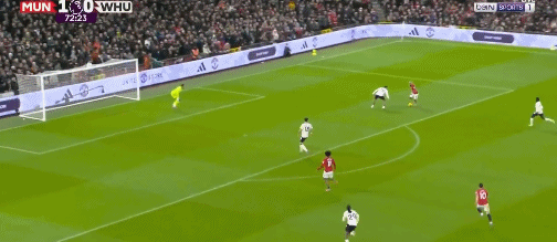 卡塞米罗禁区外射门,击中西汉姆联球员产生折射,达洛特禁区内将球卸下,随后抽射破门,1-0!